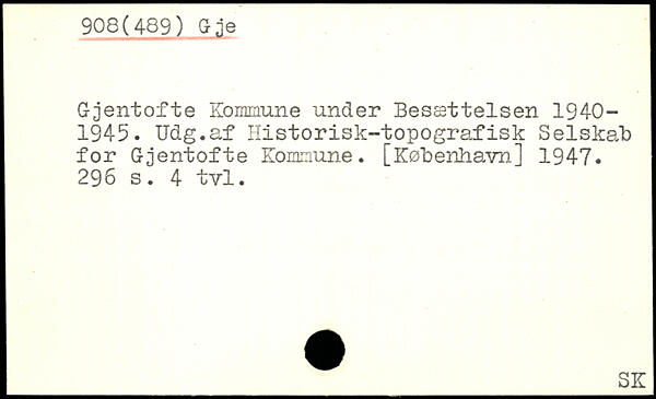 Gjentofte Kommune under Besættelsen 1940-1945. Udg.af Historisk-topografisk Selskab for Gjentofte Kommune.