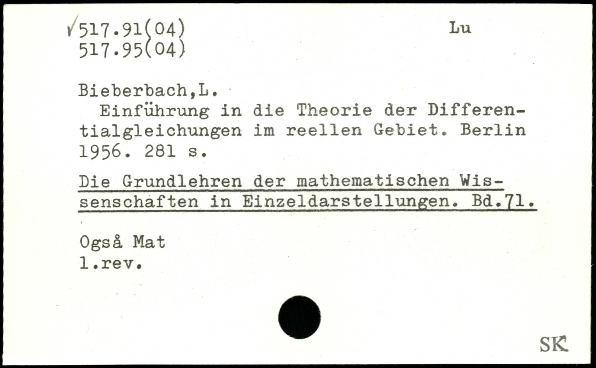Einführung in die Theorie der Differentialgleichungen im reellen Gebiet.