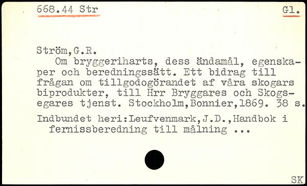 Om bryggeriharts, dess ändamål, egenskaper och beredningssätt. Ett bidrag till frågan om tillgodogörandet af våra skogars biprodukter, till Hrr Bryggares och Skogs-egares tjenst.