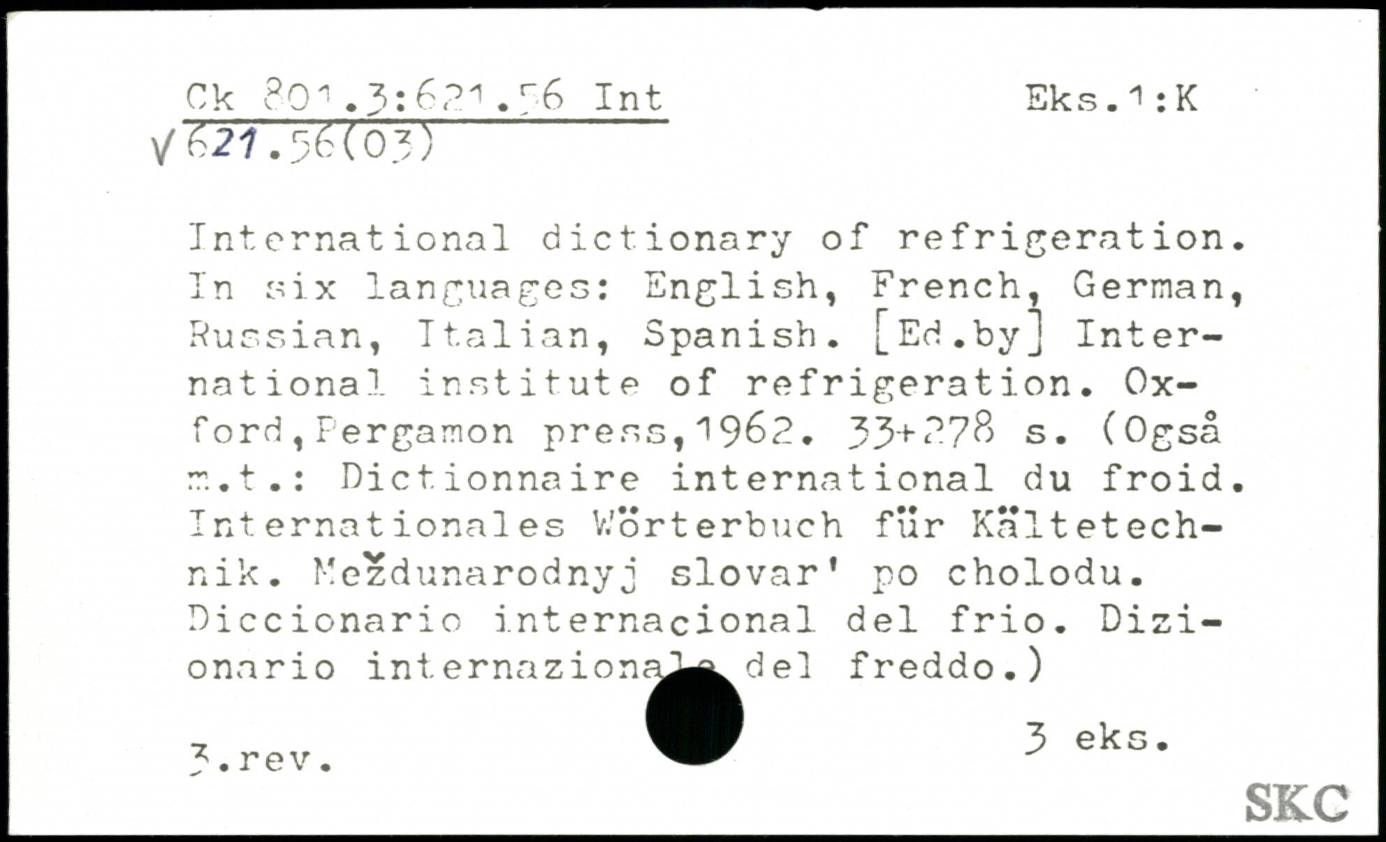 International dictionary of refrigeration. In six languages: English, French, German, Russian, Italian, Spanish.