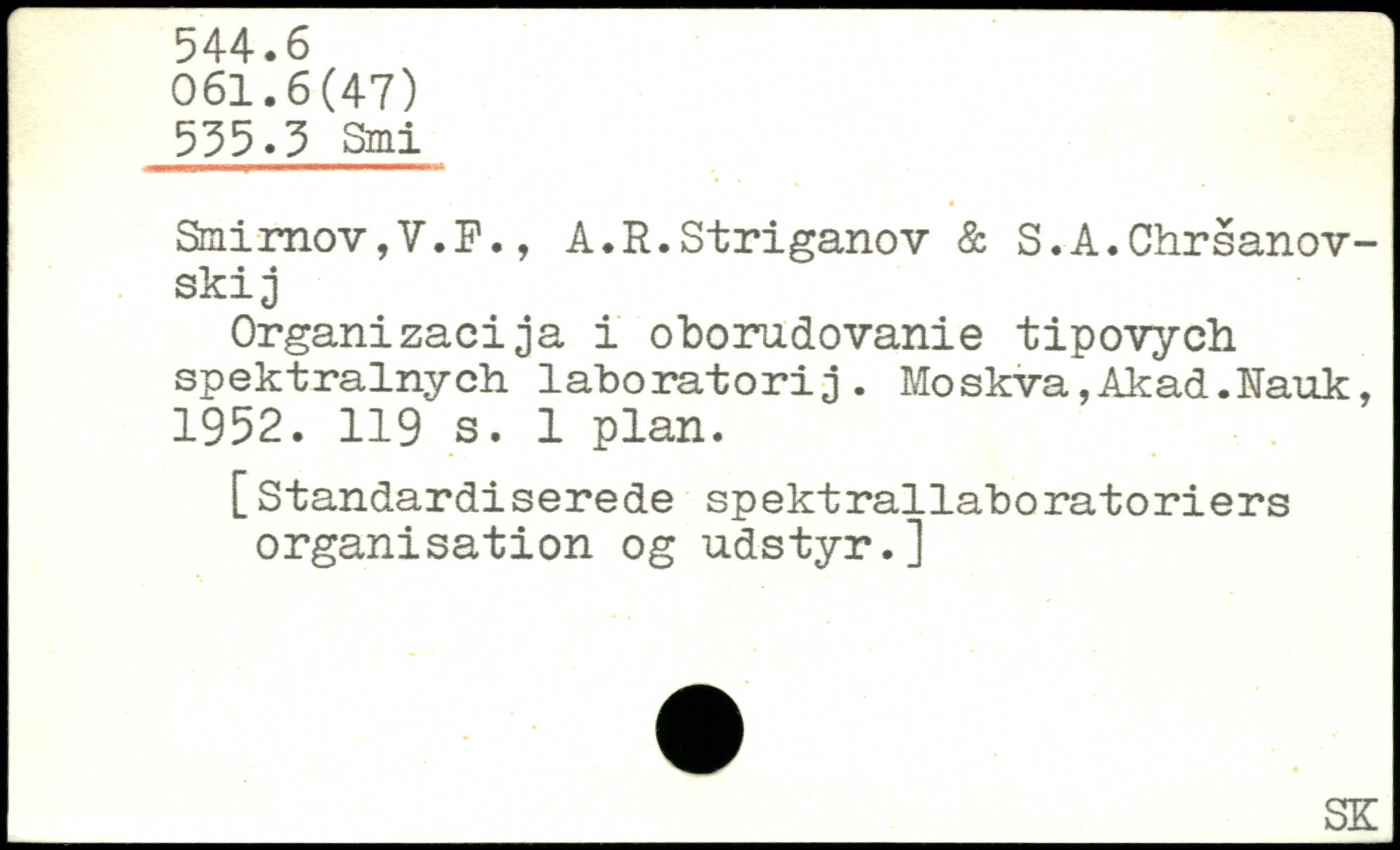 Organizacija i oborudovanie tipovych spektrainych laboratorij. Moskva,Akad.Nauk, 1952.