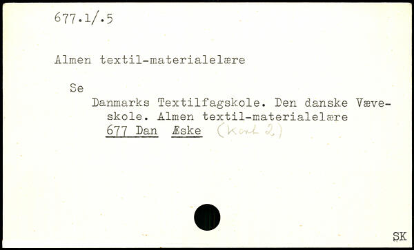 Almen textil-materialelære Se Danmarks Textilfagskole. Den danske Væveskole. Almen textil-materialelære 677 Dan Æske £ k o+M