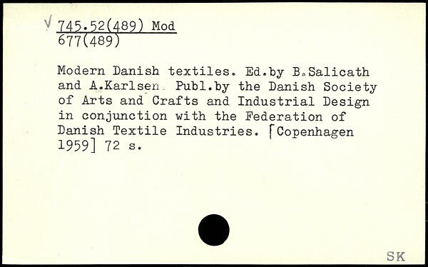 Modern Danish textiles. Ed.by BoSalicath and A.Karlsen.