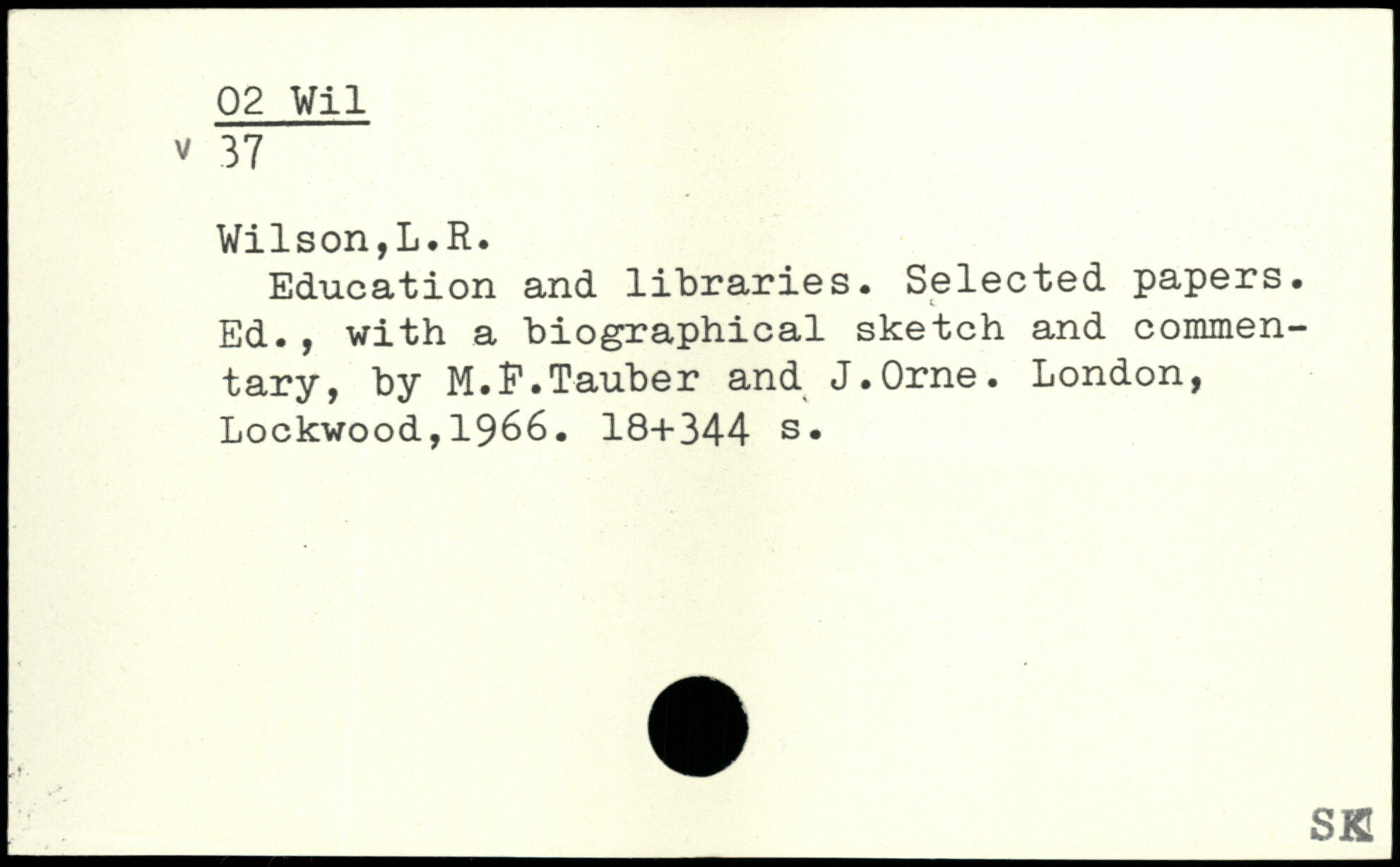 Education and libraries. Selected papers. Ed., with a biographical sketch and commentary, by M.f.Tauber and J.Orne.