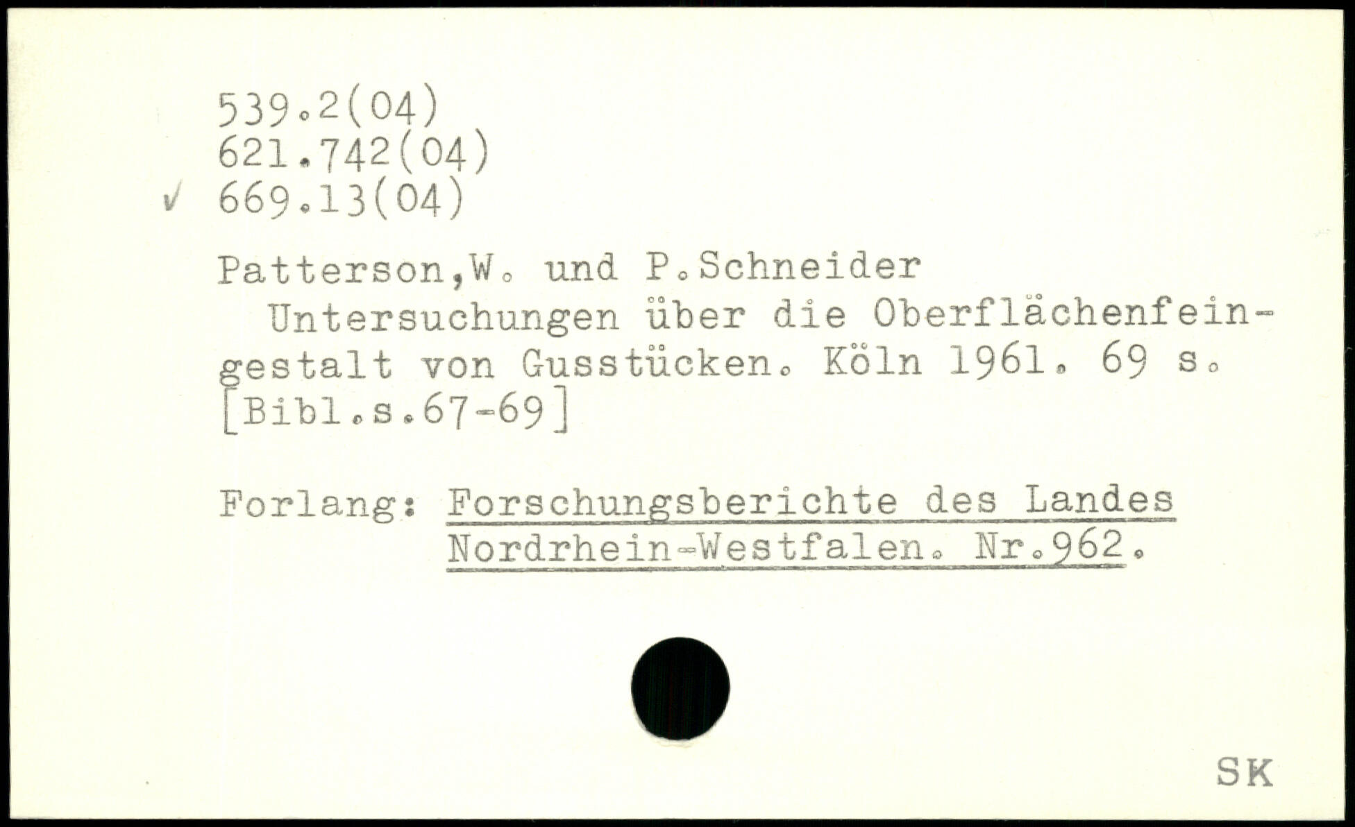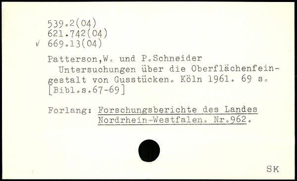 Untersuchungen über die Oherflächenfeingestalt von Gusstiickeno