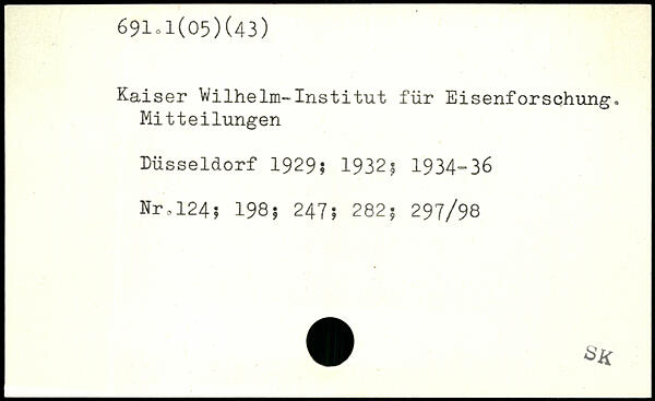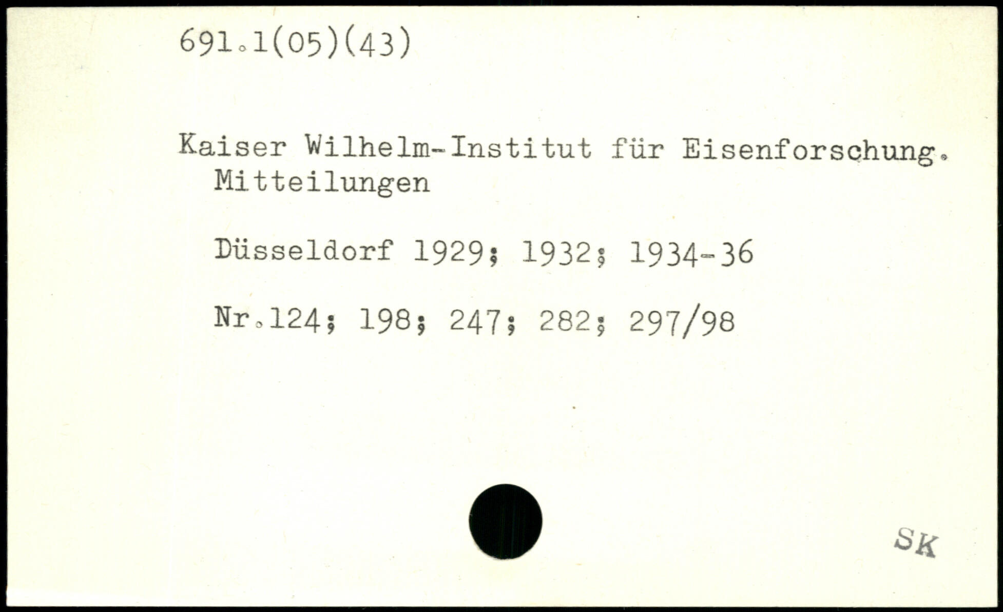 Kaiser Wilhelm-Institut für Eisenforschung. Mitteilungen Düsseldorf 1929; 1932; 1934-36 Nr,124; 198; 247; 282; 297/98