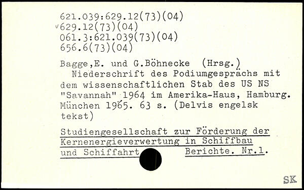 Niederschrift des Podiumgesprächs mit dem wissenschaftlichen Stab des US NS "Savannah" 1964 im Amerika-Haus, Hamburg.