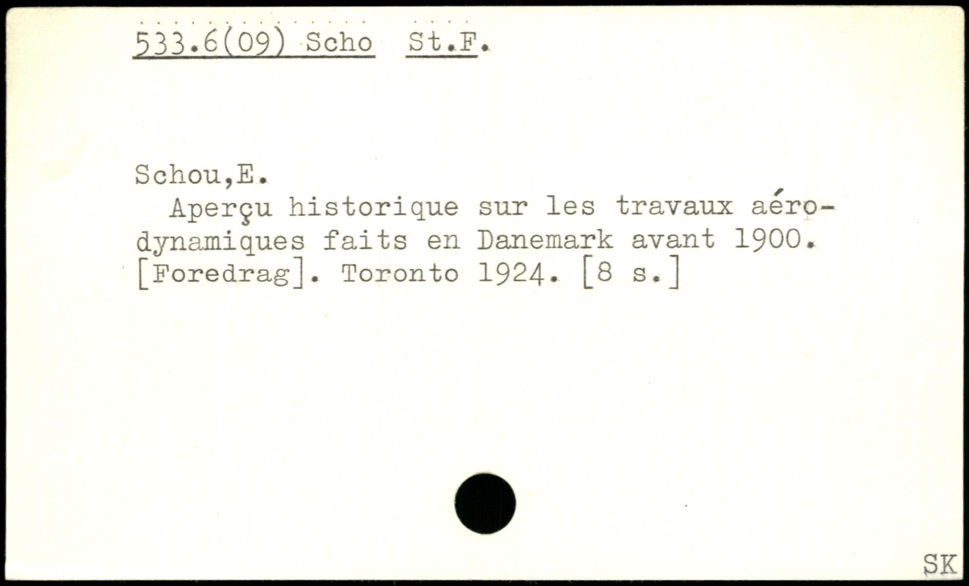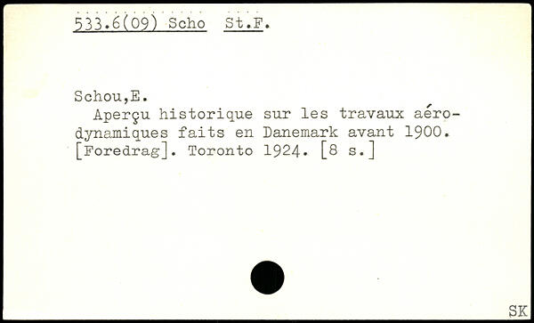 Aperçu historique sur les travaux aérodynamiques faits en Danemark avant 1900. [Foredrag]. Toronto 1924, [