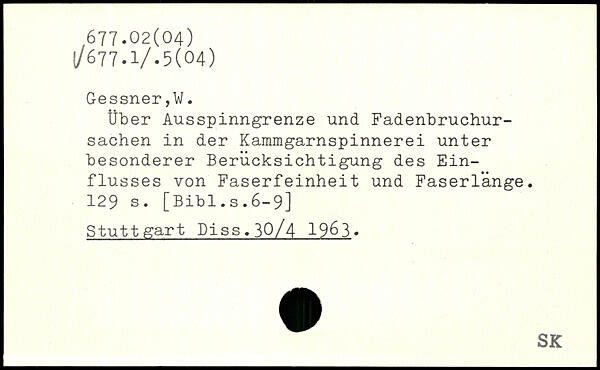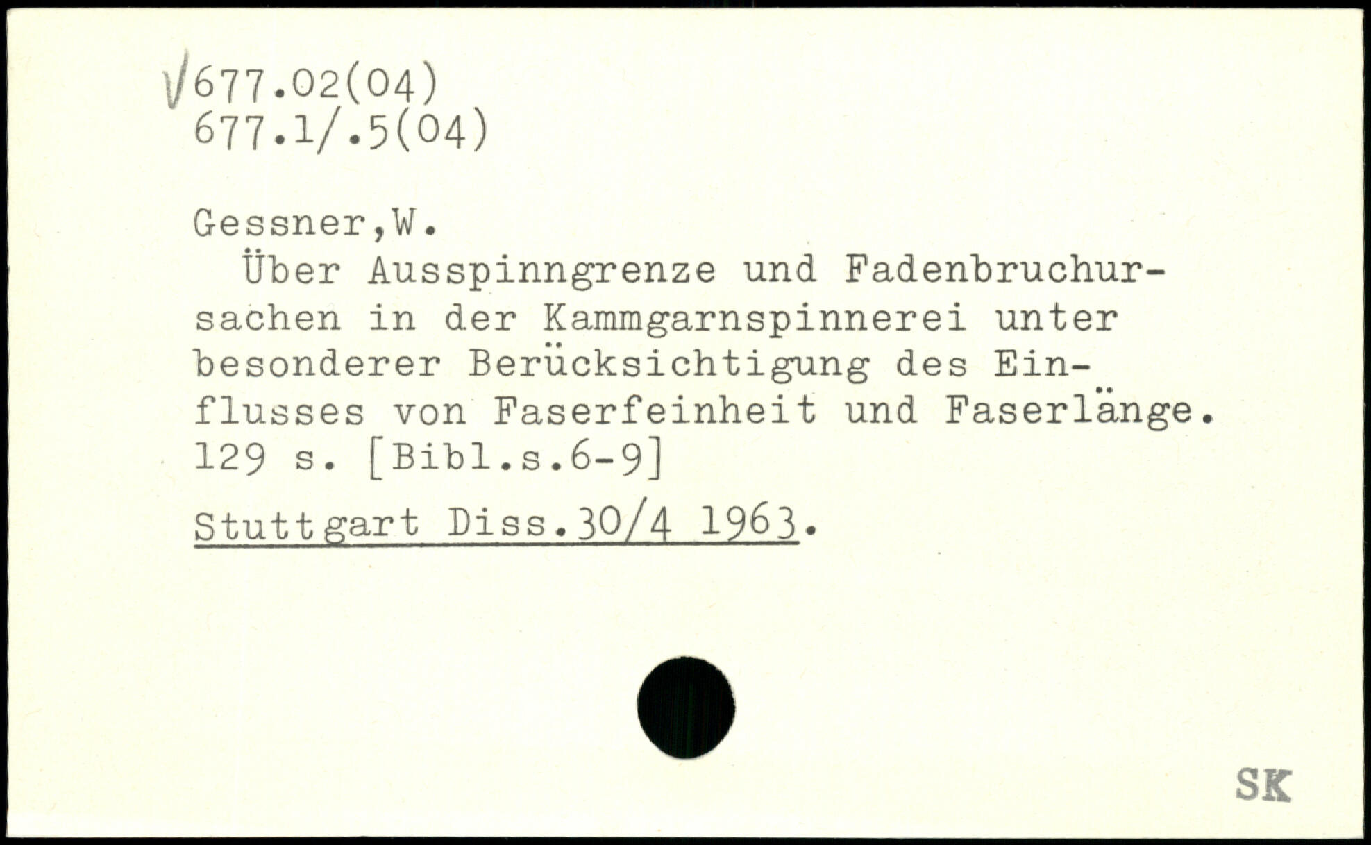 Über Ausspinngrenze und Fadenbruchursachen in der Kammgarnspinnerei unter besonderer Berücksichtigung des Einflusses von Faserfeinheit und Faserlänge.