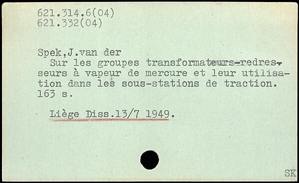 Spek,J.van der Sur les groupes transformateurs-re dre s,r seurs à vapeur de mercure et leur utilisation dans les sous-stations de traction.