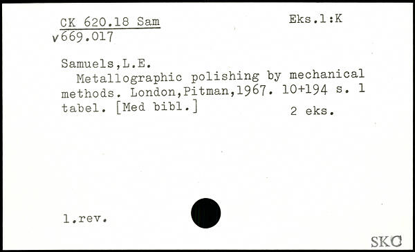 Metallographie polishing hy mechanical methods. London,Pitman,19^7.