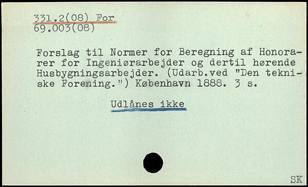 Forslag til Normer for Beregning af Honorarer for Ingeniørarbejder og dertil hørende Husbygningsarbejder. (Udarb.ved "Ben tekniske Forening.”)