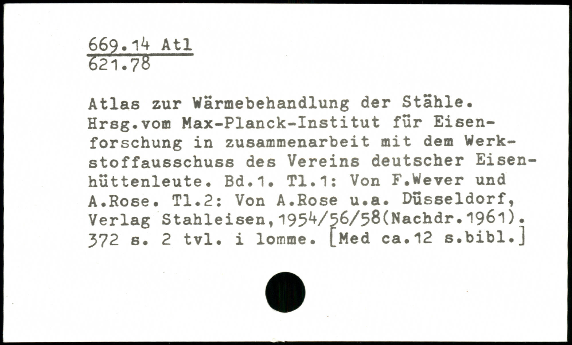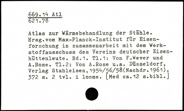 Atlas zur Wärmebehandlung der Stähle. Hrsg.vom Max-Planck-Institut für Eisenforschung in Zusammenarbeit mit dem Werkstof fausschuss des Vereins deutscher Eisenhüttenleute.