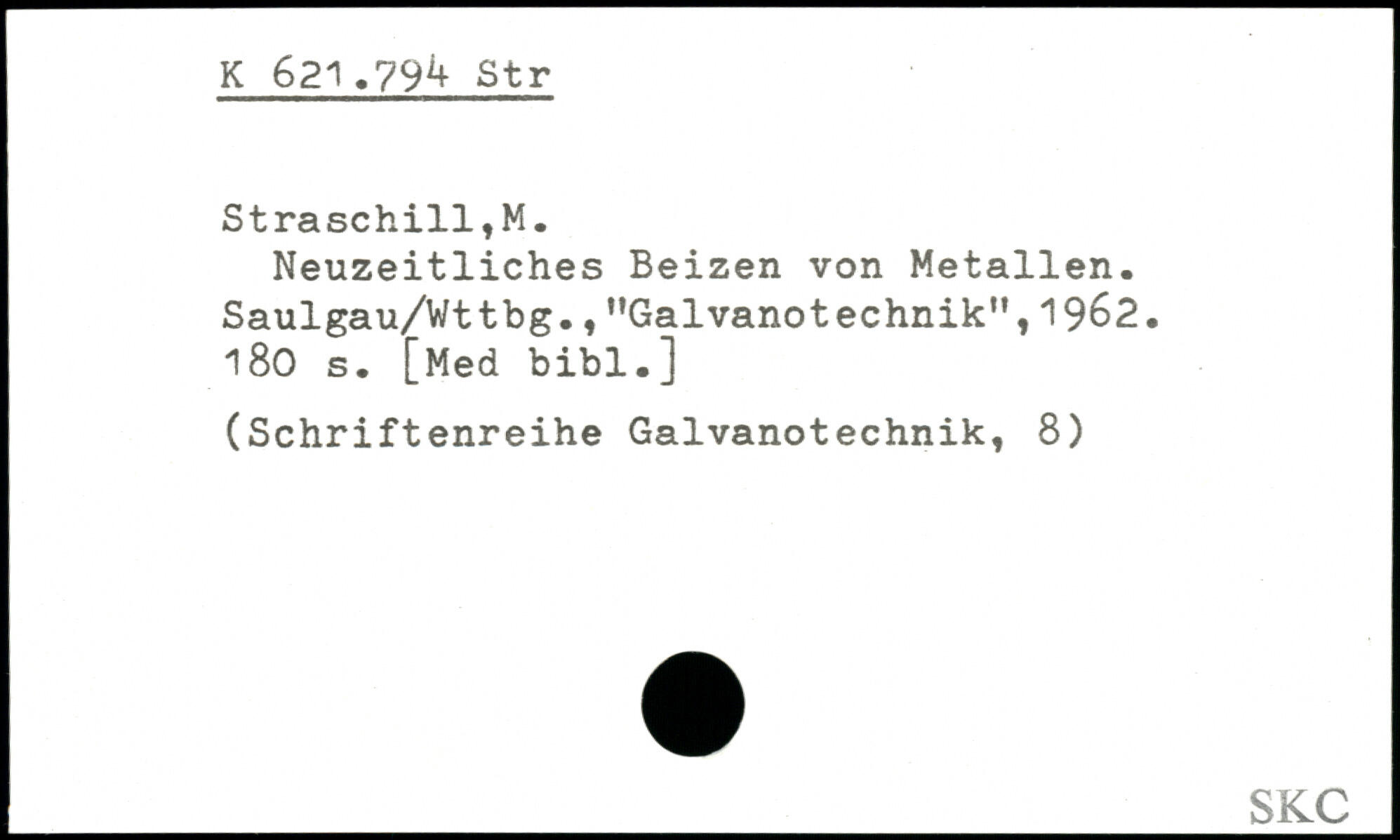 Neuzeitliches Beizen von Metallen. Saulgau/Wttbg.,"Galvanotechnik",1962.