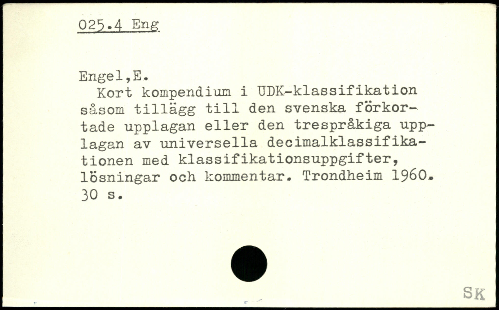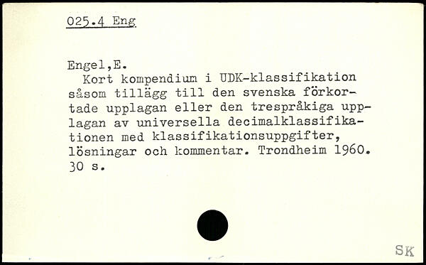 Kort kompendium i TJDK-klassif ikation såsom tillägg till den svenska förkortade upplagan eller den trespråkiga upplagan av universella decimalklassifikationen med klassifikationsuppgifter, lösningar och kommentar.