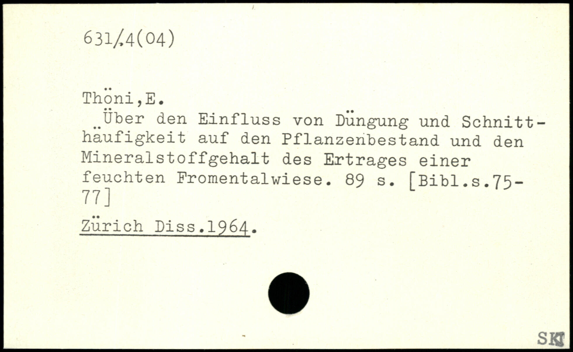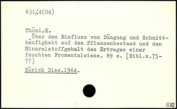..Über den Einfluss von Dungung und Schnitt -haufigkeit auf den Pflanzenbestand und den Mineralstoffgehalt des Ertrages einer feuchten Promentalwiese.