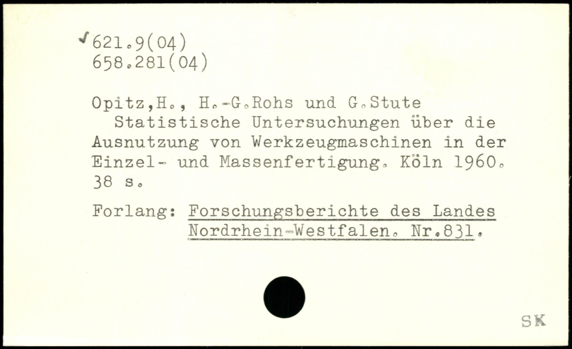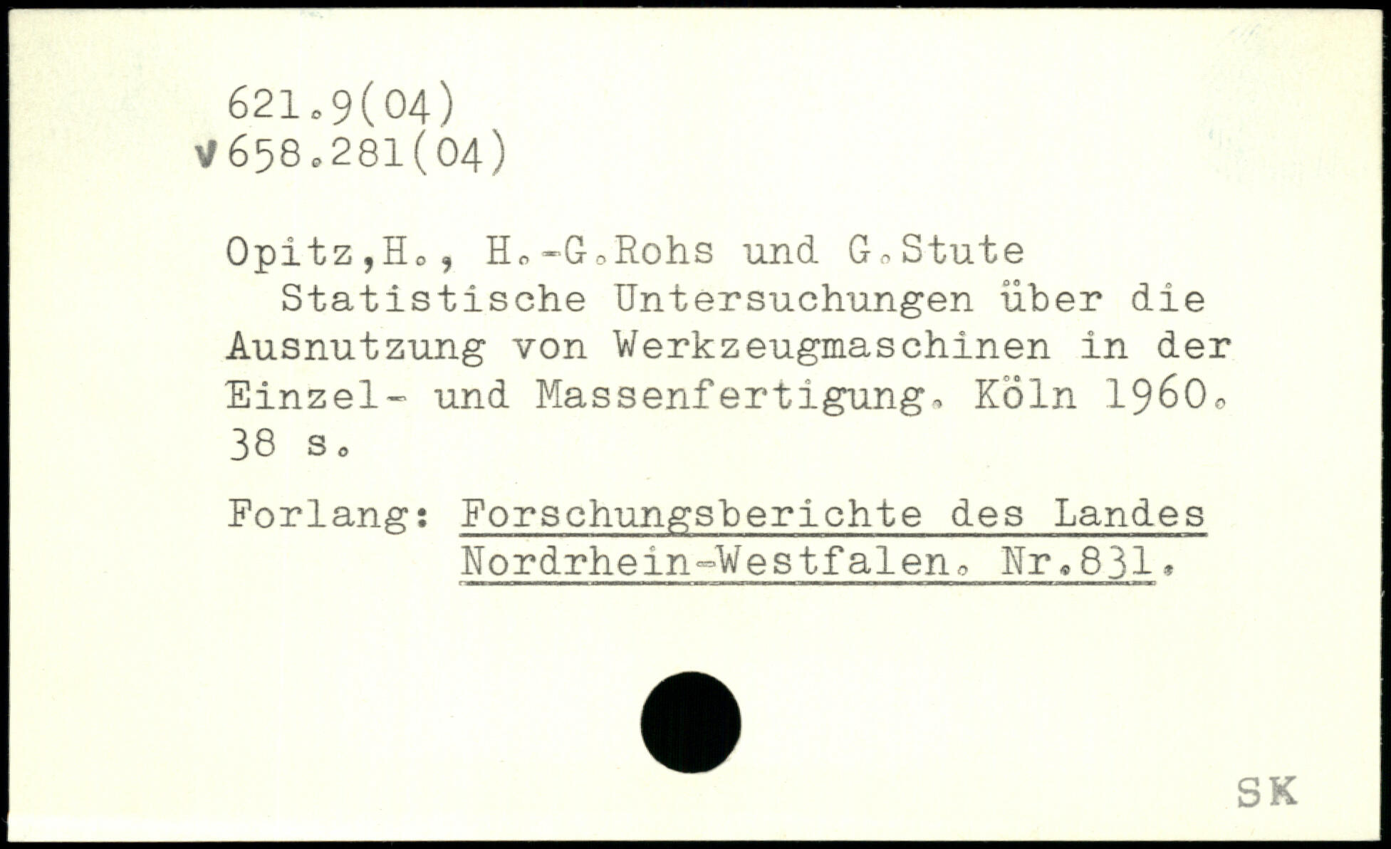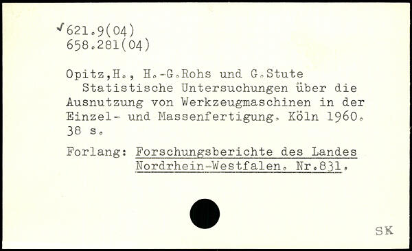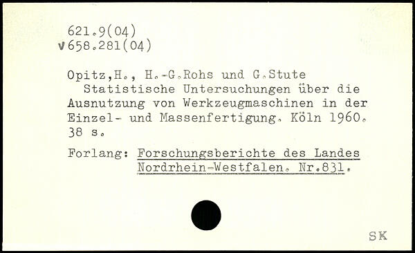 Opitz,Ho, Hc-GoRohs und G,Stute Statistische Untersuchungen über die Ausnutzung von Werkzeugmaschinen in der Einzel- und Massenfertigung
