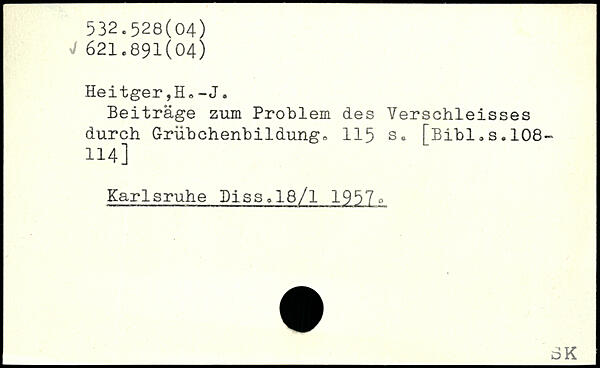 Beiträge zum Problem des Verschleisses durch Grubchenbildüng, 115