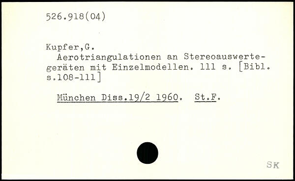 Aerotriangulationen an Stereoauswerte-geräten mit Einzelmodellen. Ill s