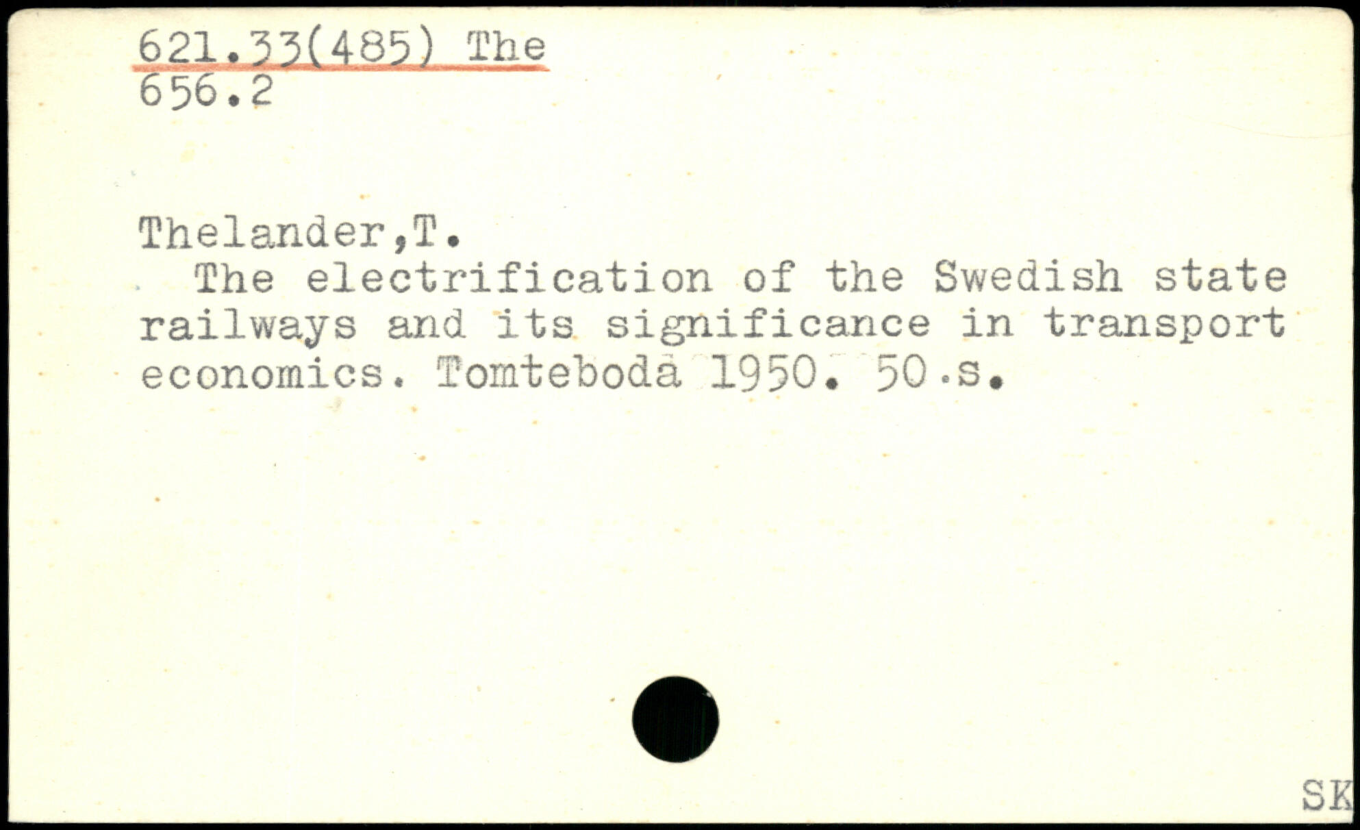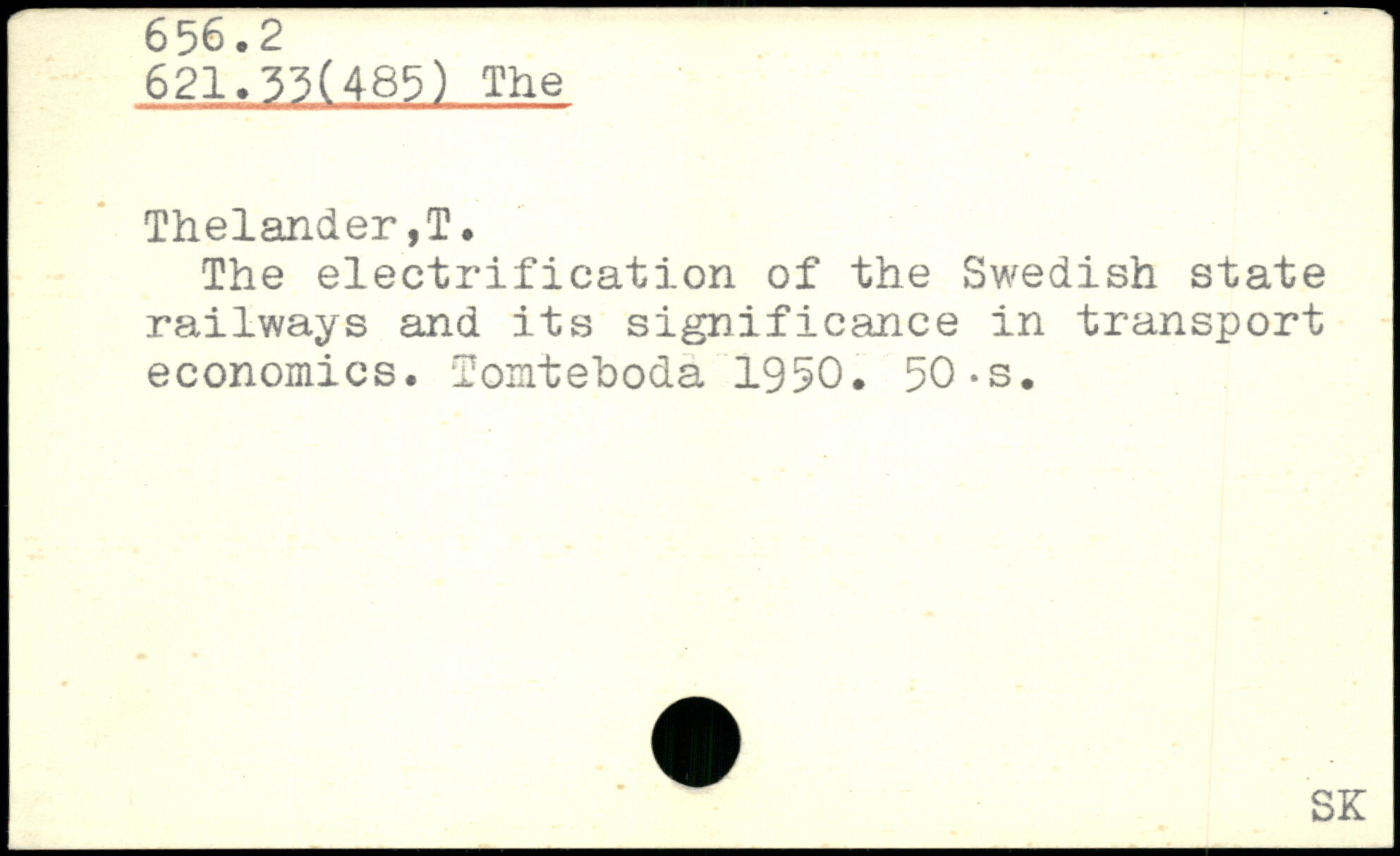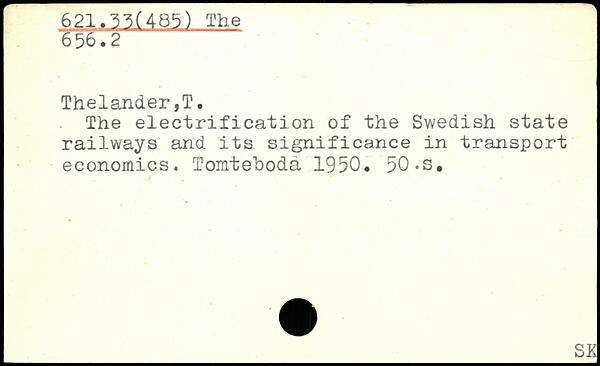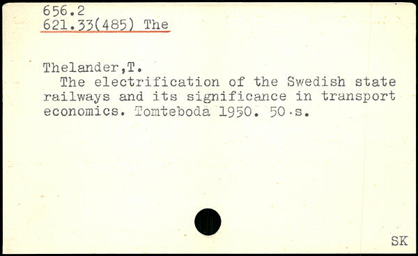 The electrification of the Swedish state railways and its significance in transport economics. Tomteboda 1950. 50-s.
