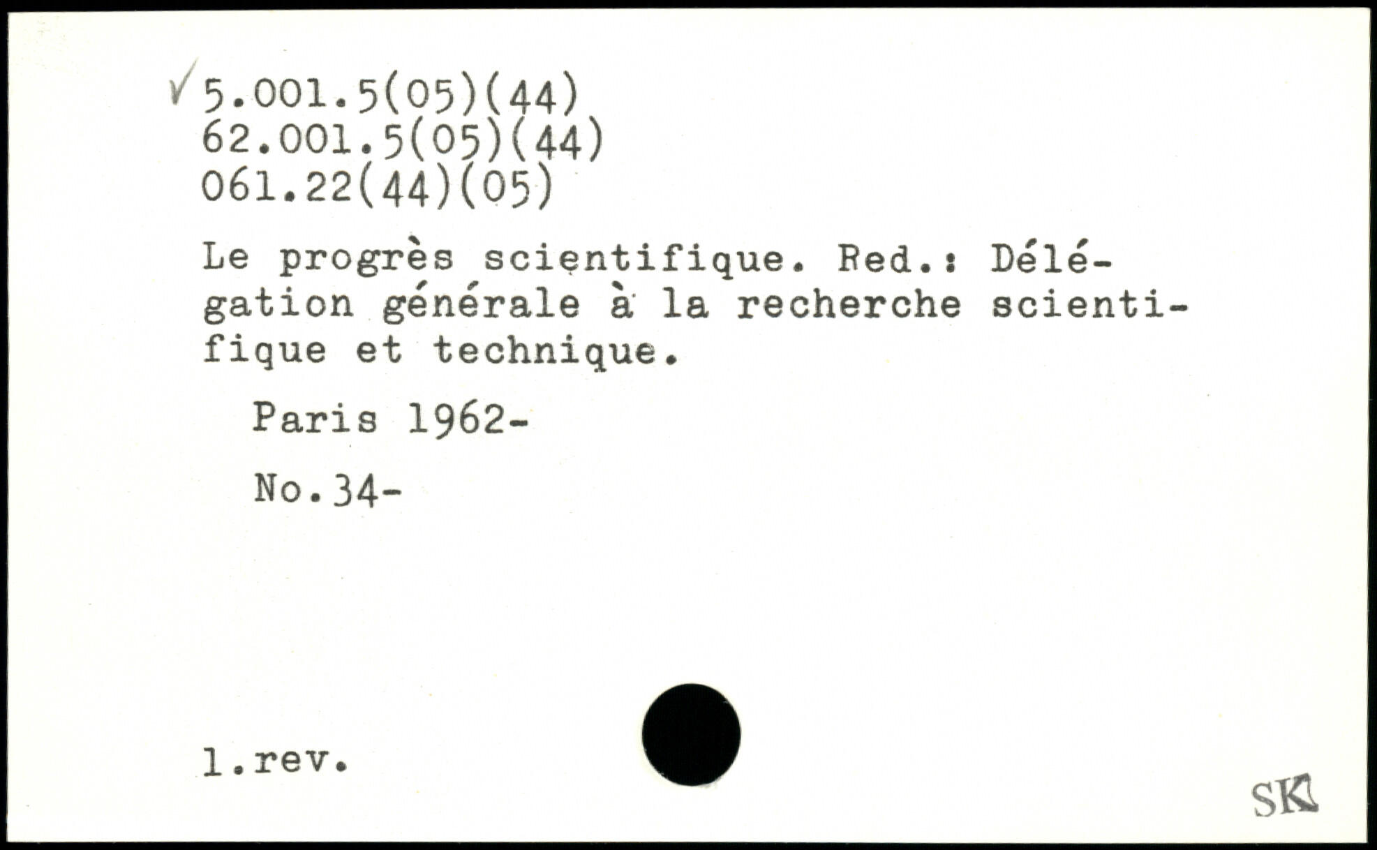 Le progrès scientifique. Bed.ï Délégation générale à la recherche scientifique et technique.
