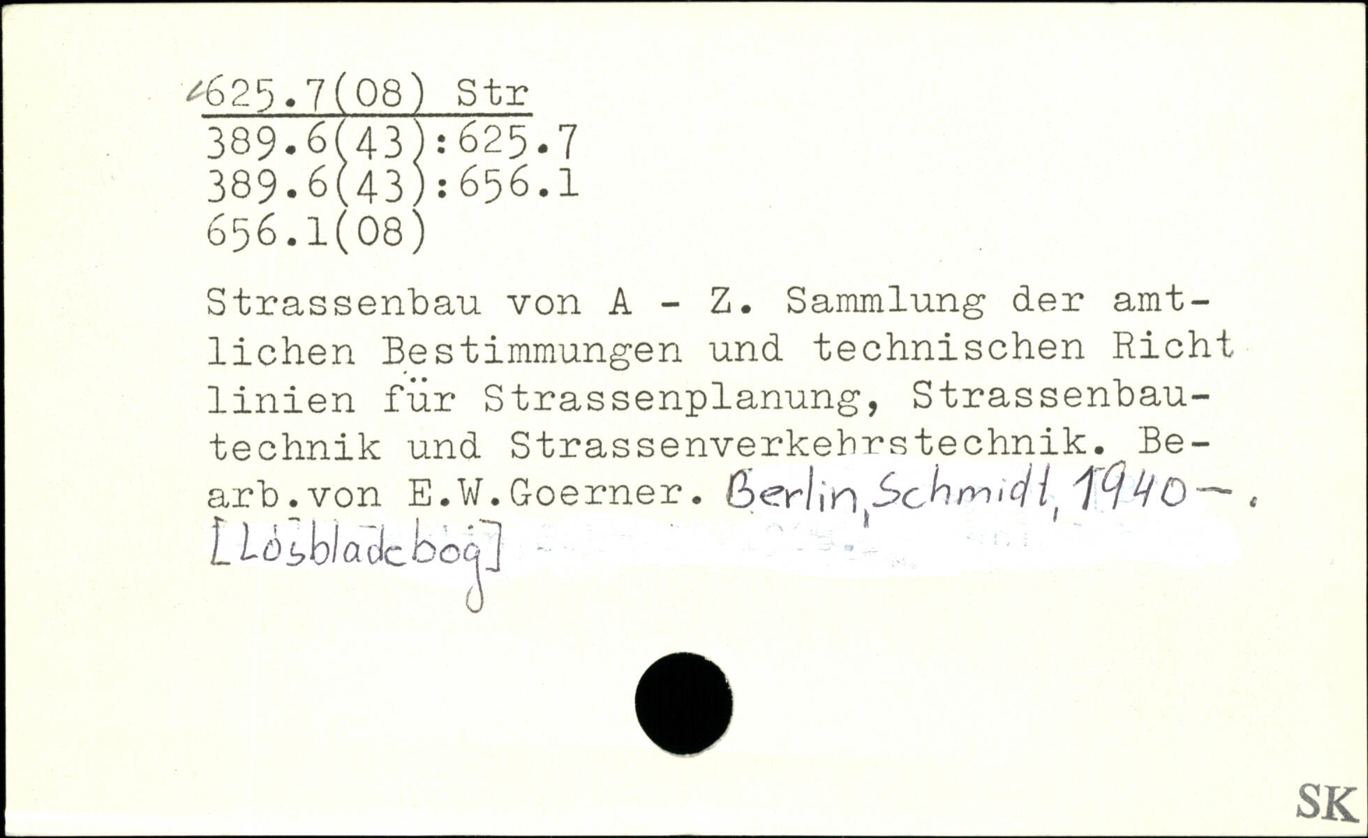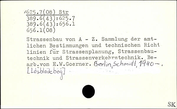 Strassenbau von A - Z. Sammlung der amtlichen Bestimmungen und technischen Rieht linien für Strassenplanung, Strassenbau-technik und Strassenverkehrstechnik. Be-arb.von E.W.Goerner. ßerlin 6>chrv>i(Hi , Llo^blaclcbcc^]