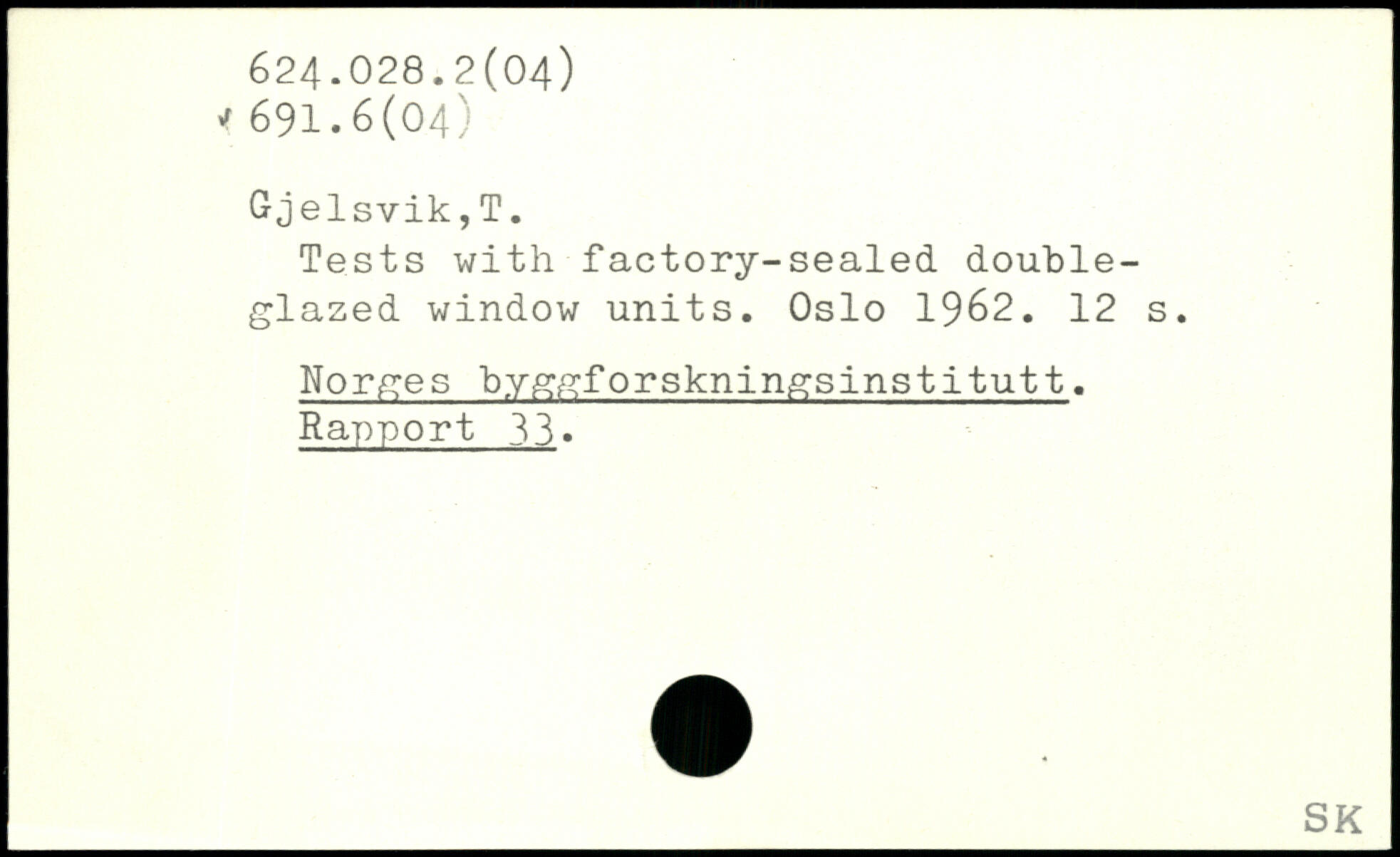 Tests with factory-sealed double-glazed window units. Oslo 1962.