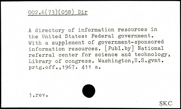 A directory of information resources in the United States: Federal government. With a supplement of government-sponsored information resources.