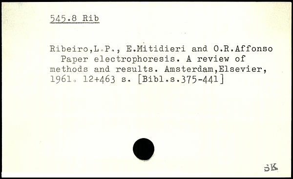Riteiro,LoP,? E.Mitidieri and O.R.Affonso Paper electrophoresis. A review of methods and results.
