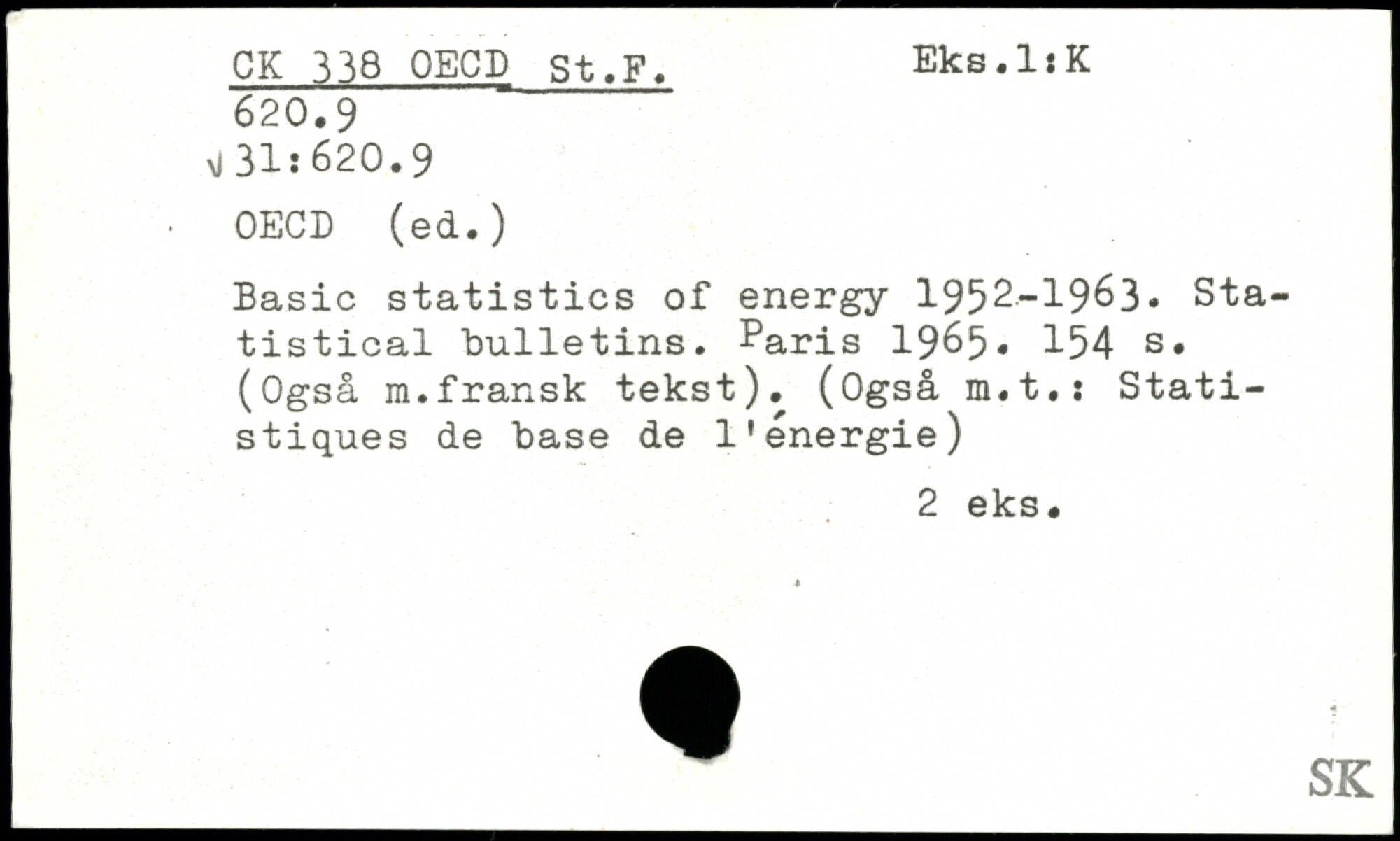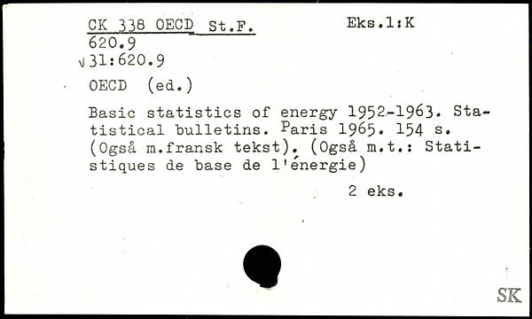 Basic statistics of energy 1952-1963, Statistical bulletins. Paris 19^5