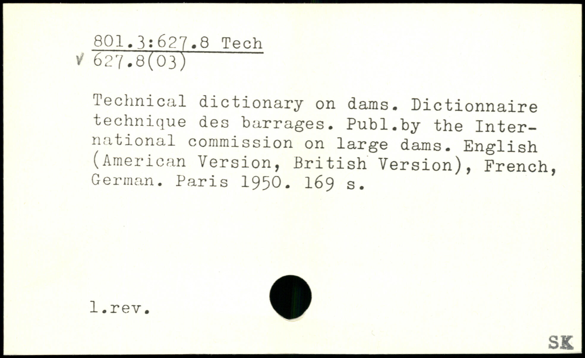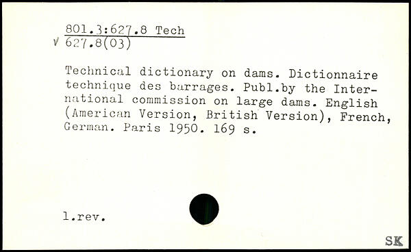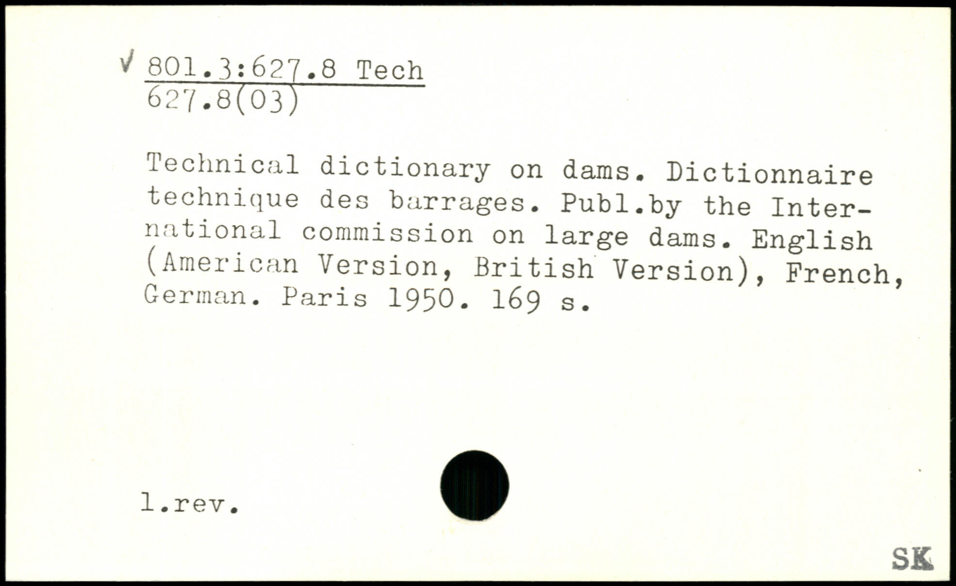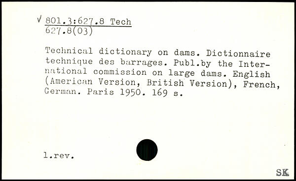 Technical dictionary on dams. Dictionnaire technique des barrages.