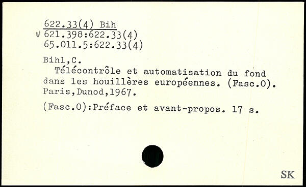 Telècontrole et automatisation du fond dans les houillères européennes. (Fasc.O).