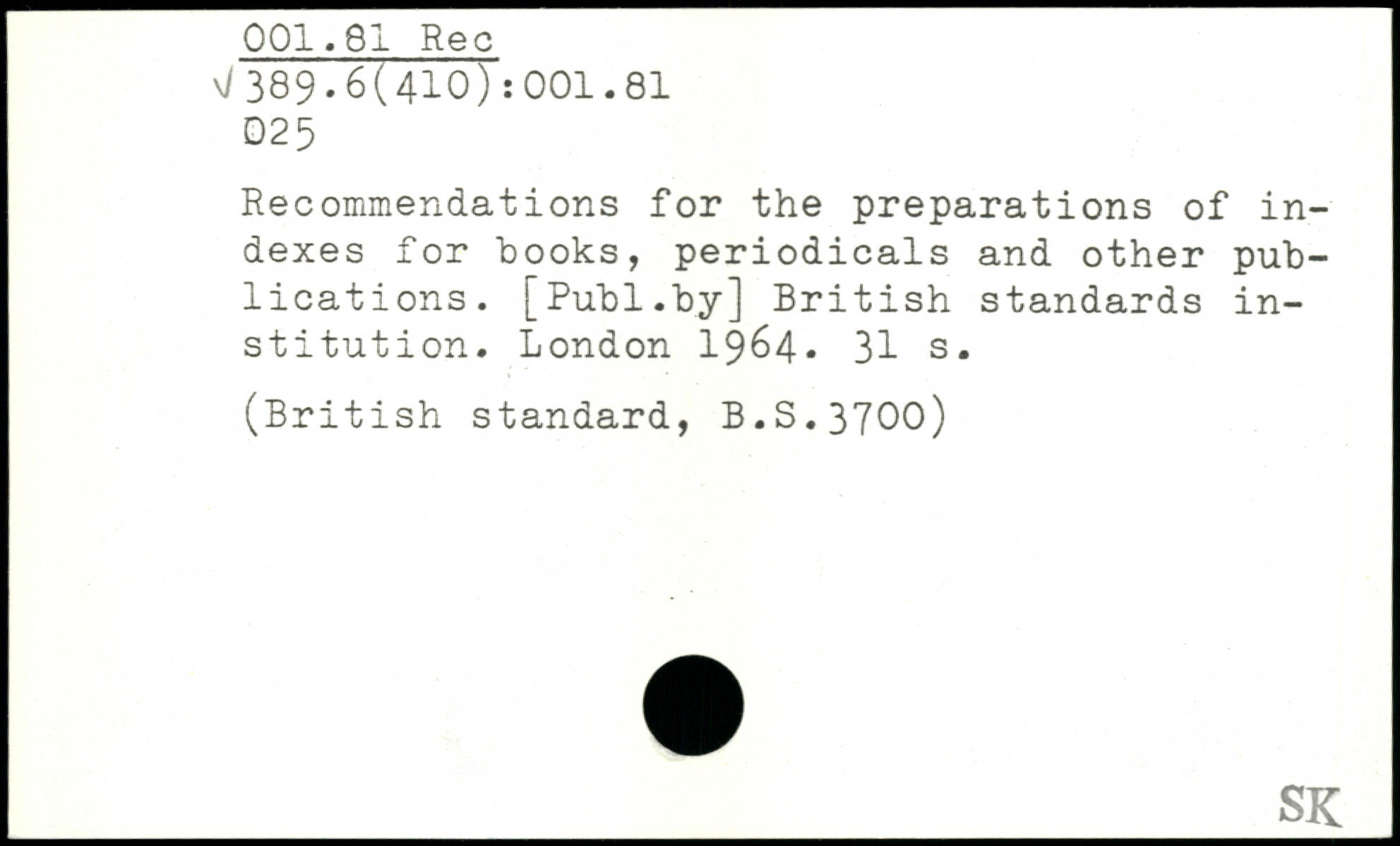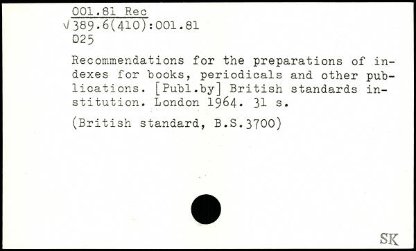 Recommendations for the preparations of indexes for hooks, periodicals and other publications.