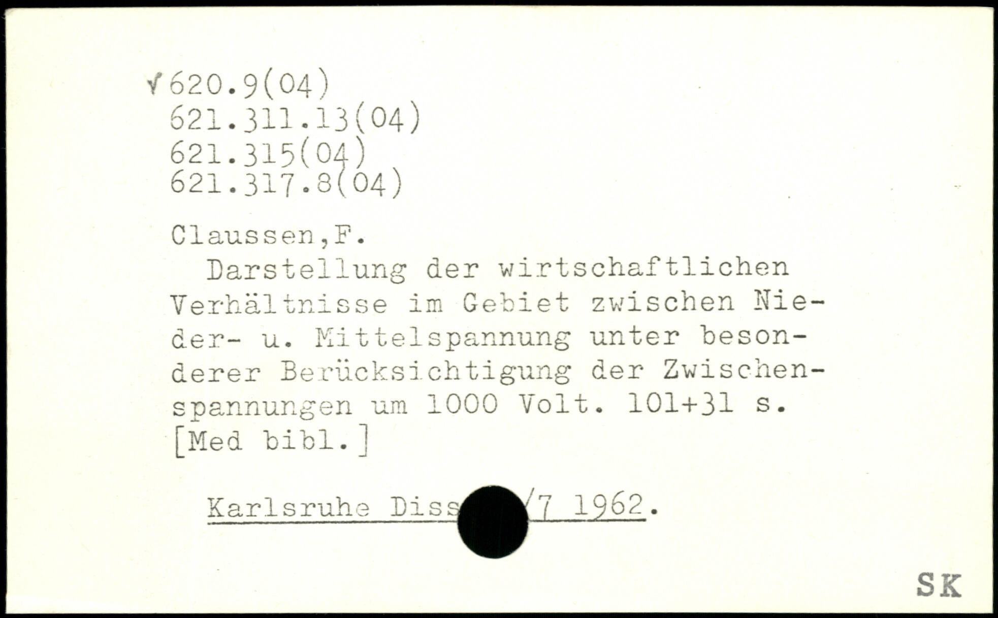 Darstellung der wirtschaftlichen Verhältnisse im Gebiet zwischen Nieder- u. KittelSpannung unter besonderer Berücksichtigung der Zwischenspannungen um 1000 Volt.