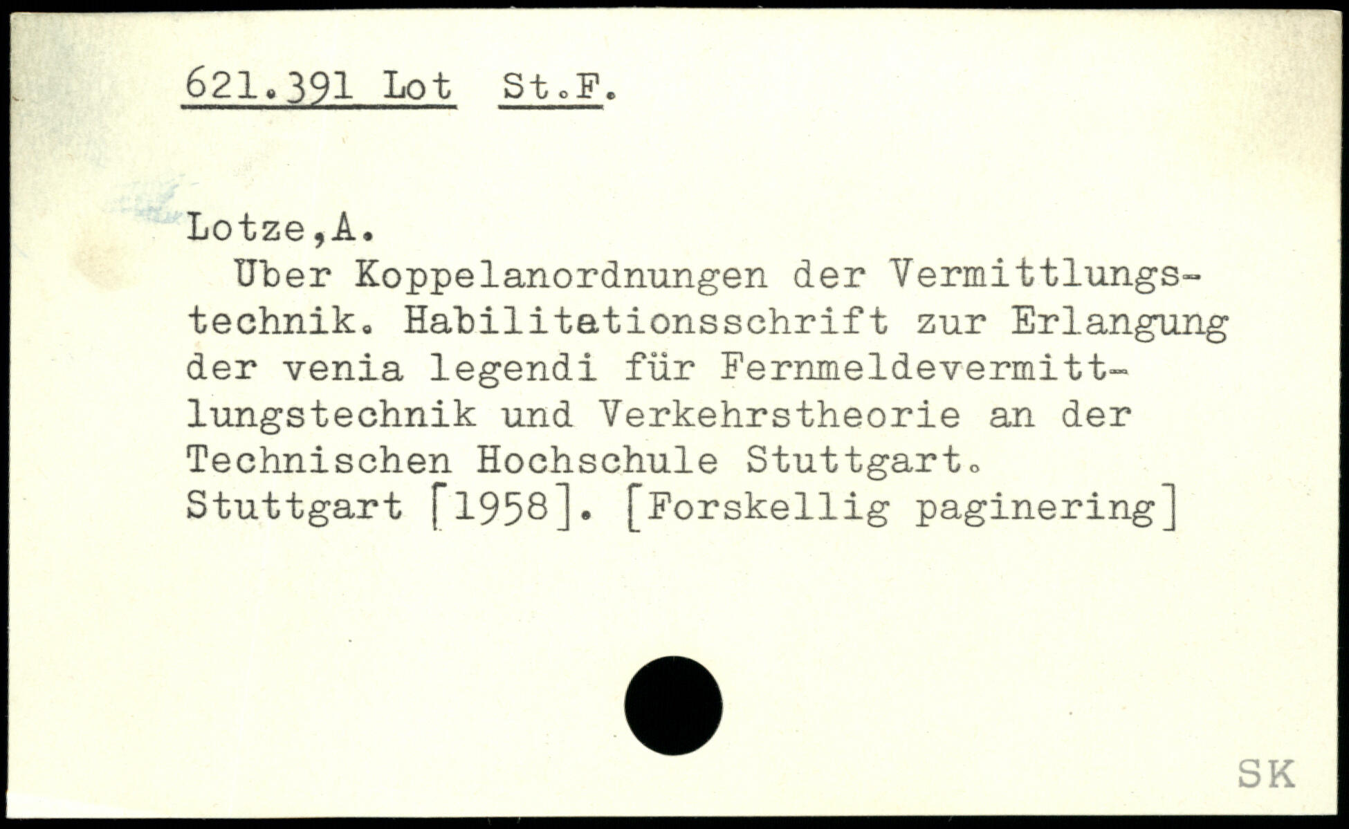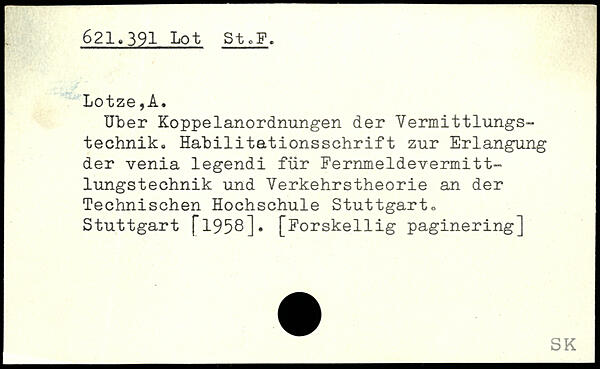 Uber Koppelanordnungen der Vermittlungs-technik, Habilitationsschrift zur Erlangung der venia legendi für Fernmeldevermitt-lungstechnik und Verkehrstheorie an der Technischen Hochschule Stuttgart, Stuttgart f1958], [Forskellig paginering]