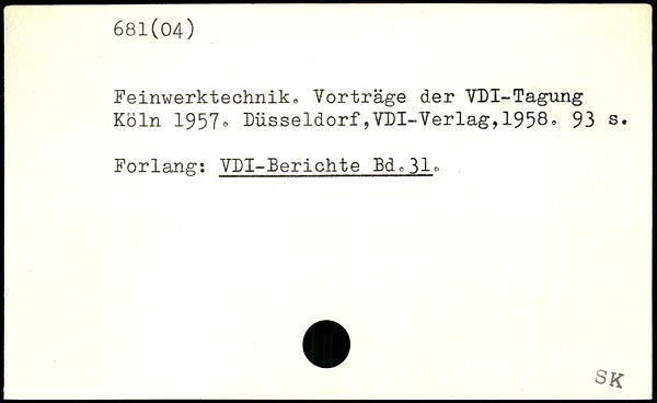 Feinwerktechnik,, Vorträge der VII-Tagung \