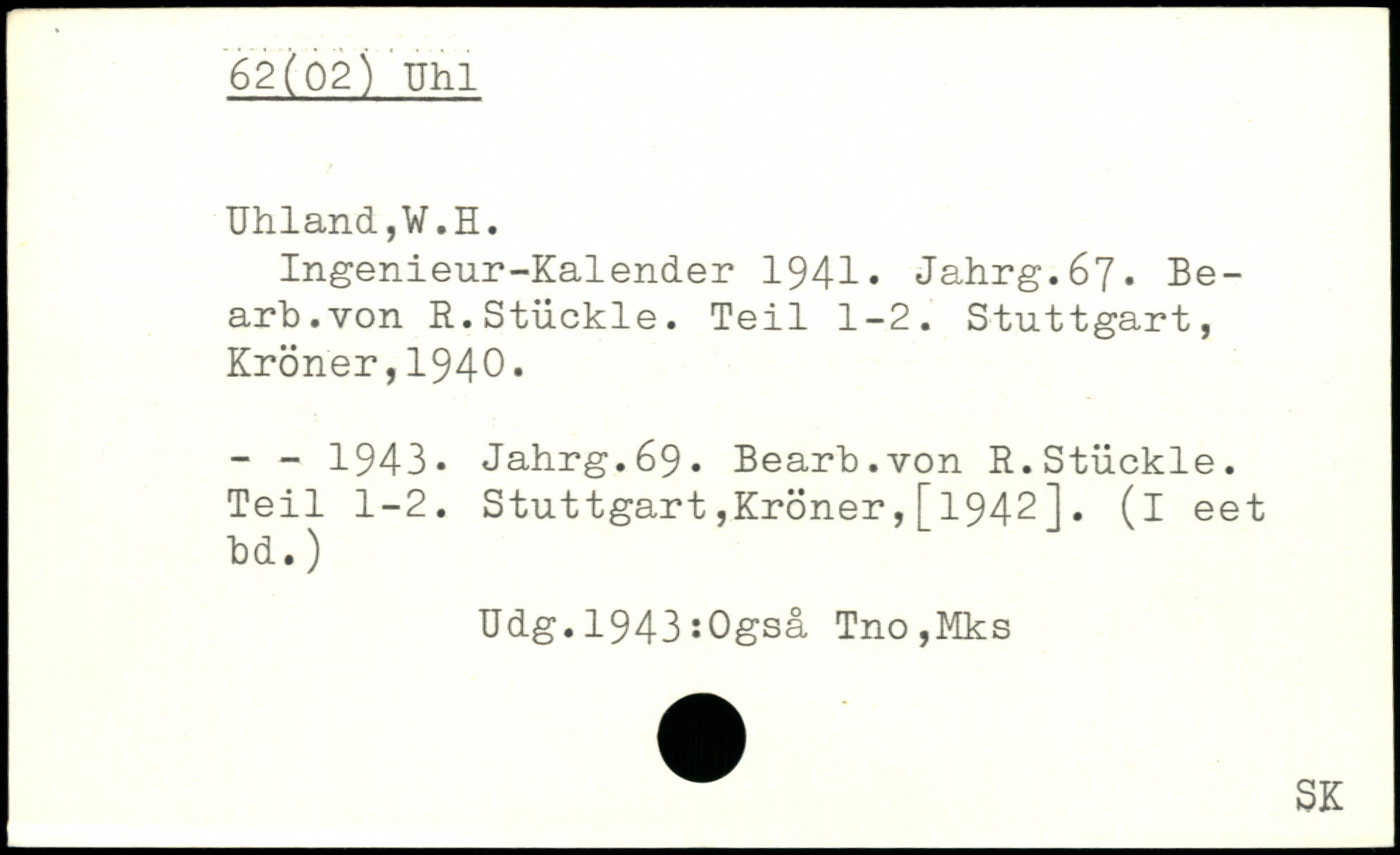 Ingenieur-Kalender 1941, Jahrg.67. Be-arb.von R.Stückle. Teil 1-2.
