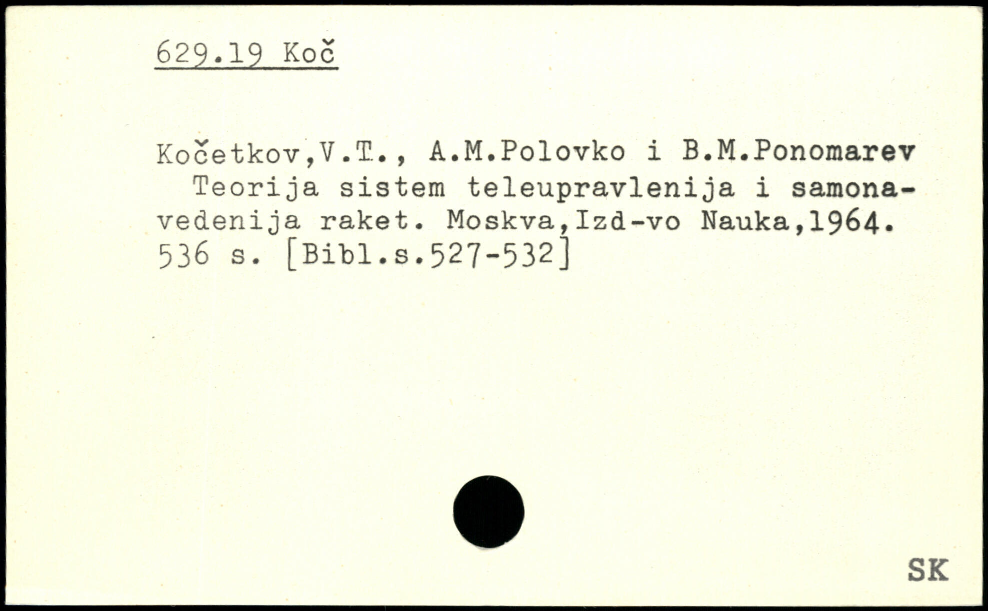 KocetkoVjV.T., A.M.Polovko i B.M.Ponomarev Teorija sistem teleupravlenija i samona-vedenija raket.