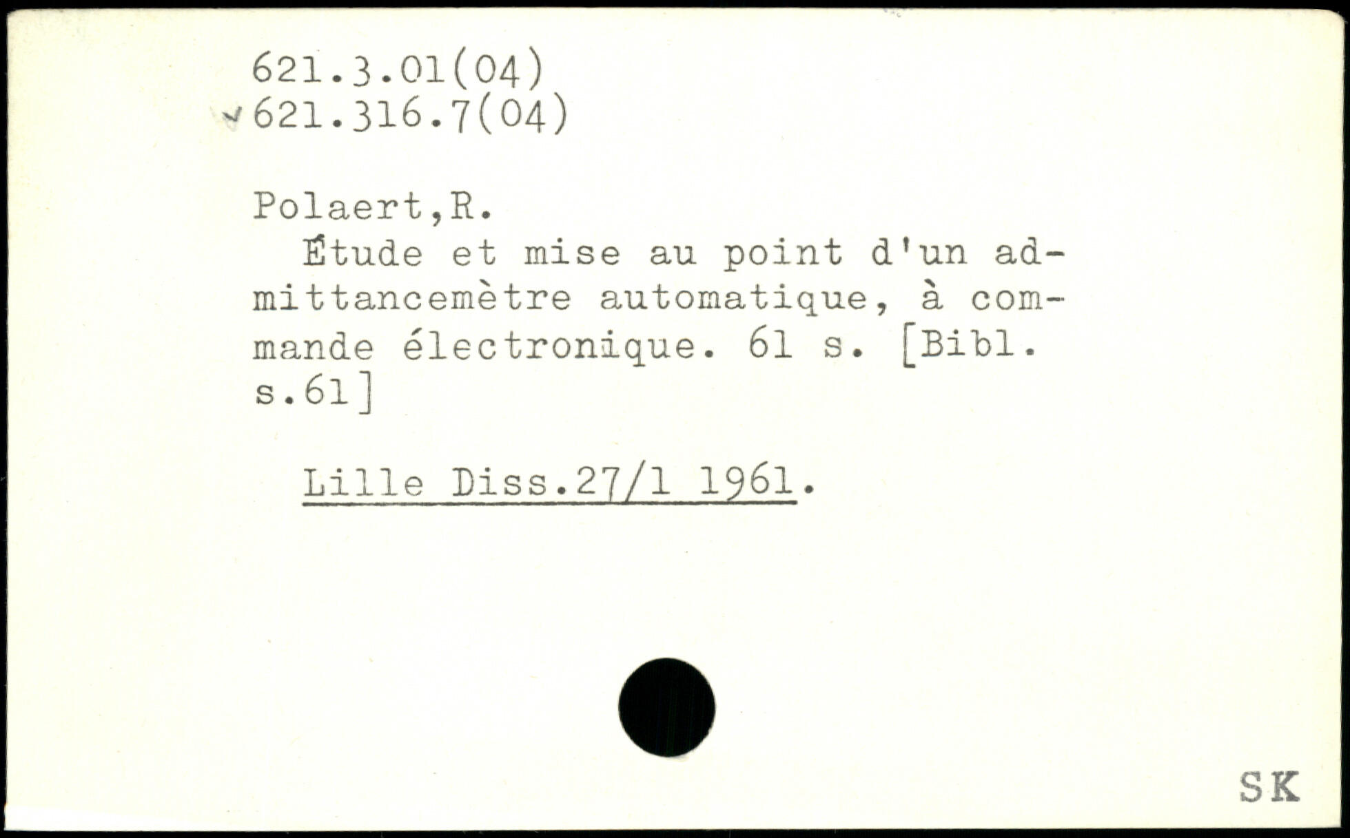 Étude et mise au point d’un ad-mittancemètre automatique, à commande électronique. 6l s.
