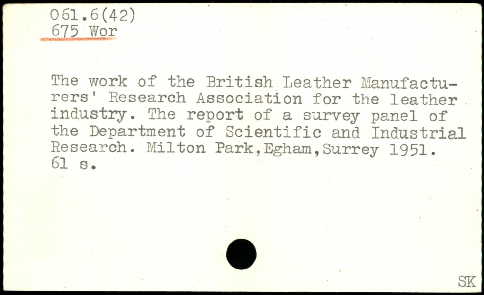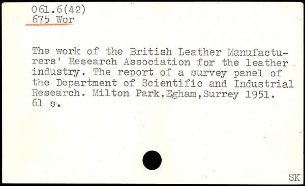 The work of the British Leather Manufacturers' Research Association for the leather industry. The report of a survey panel of the Department of Scientific and Industrial Research. Milton Park,Egham,Surrey 1951.