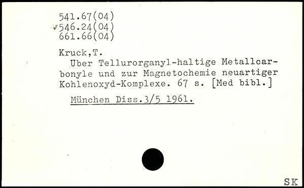 Uber Tellurorganyl-haltige Metallcar-bonyle und zur Magnetochemie neuartiger Kohlenoxyd-Komplexe.