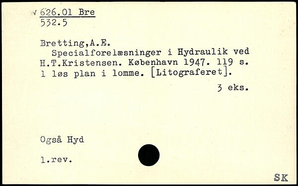 Specialforelæsninger i Hydraulik ved H.T.Kristensen.