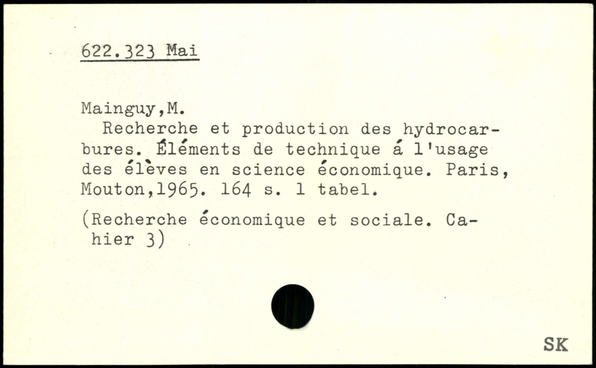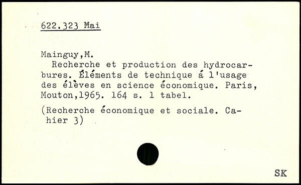 Recherche et production des hydrocarbures. Éléments de technique a l'usage des éleves en science économique.