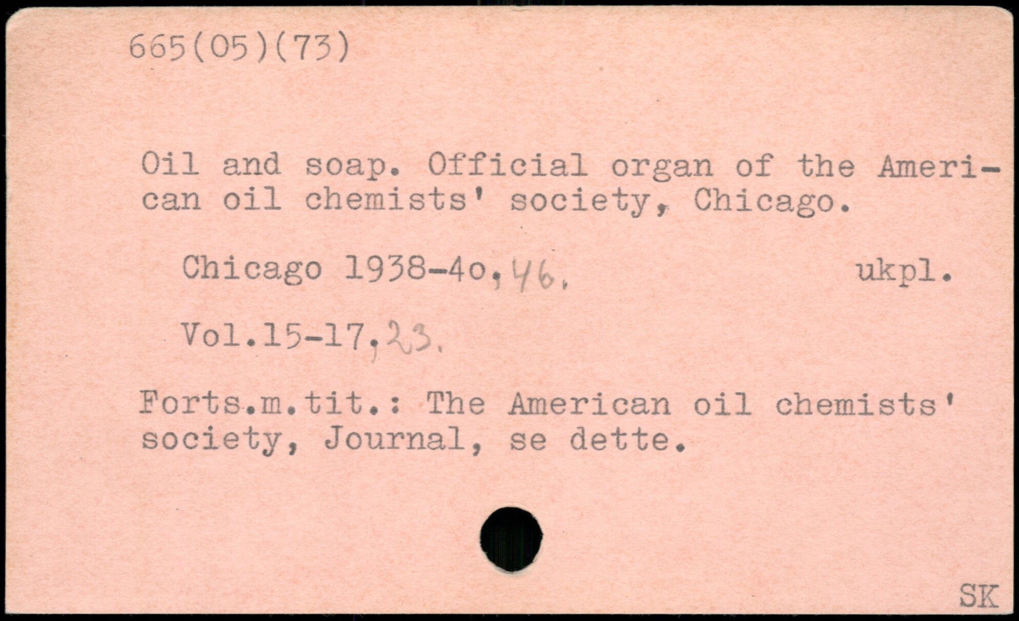 Chicago 1938-4o, i/^t ukpl. Vol. 15-17. \3>. Forts.m.tit.: The American oil chemists’ society, Journal, se dette.