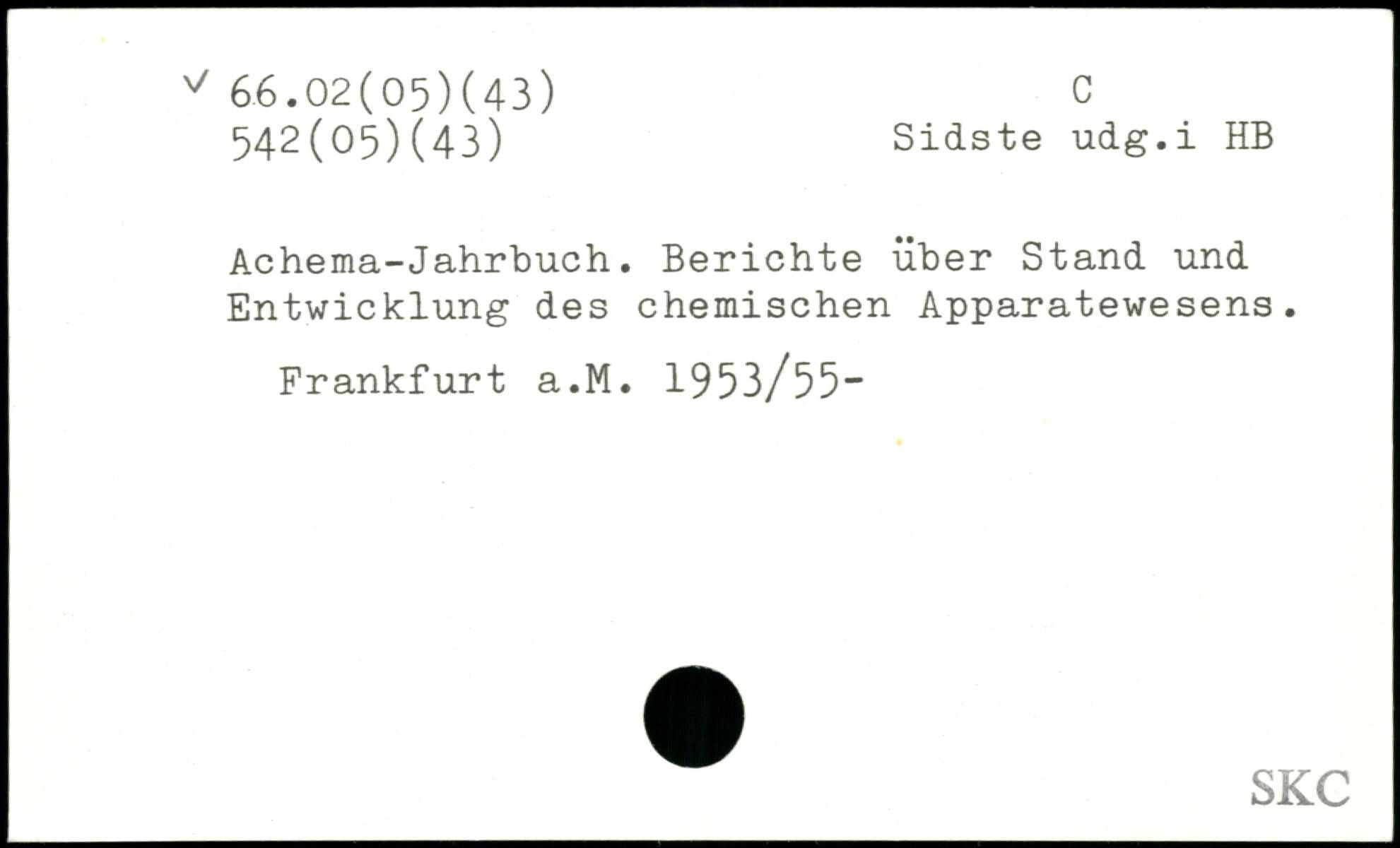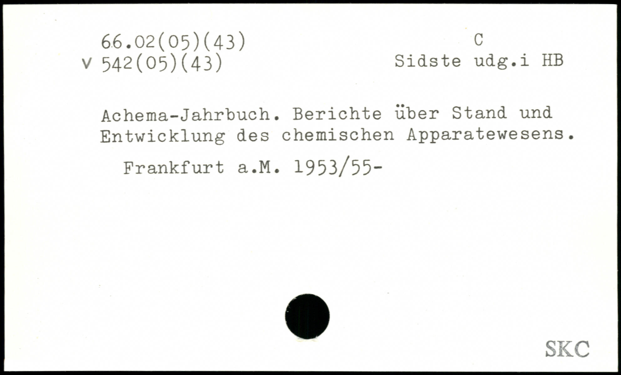 Achema-Jahrbuch. Berichte über Stand und Entwicklung des chemischen Apparatewesens. Frankfurt a.M. 1953/55“