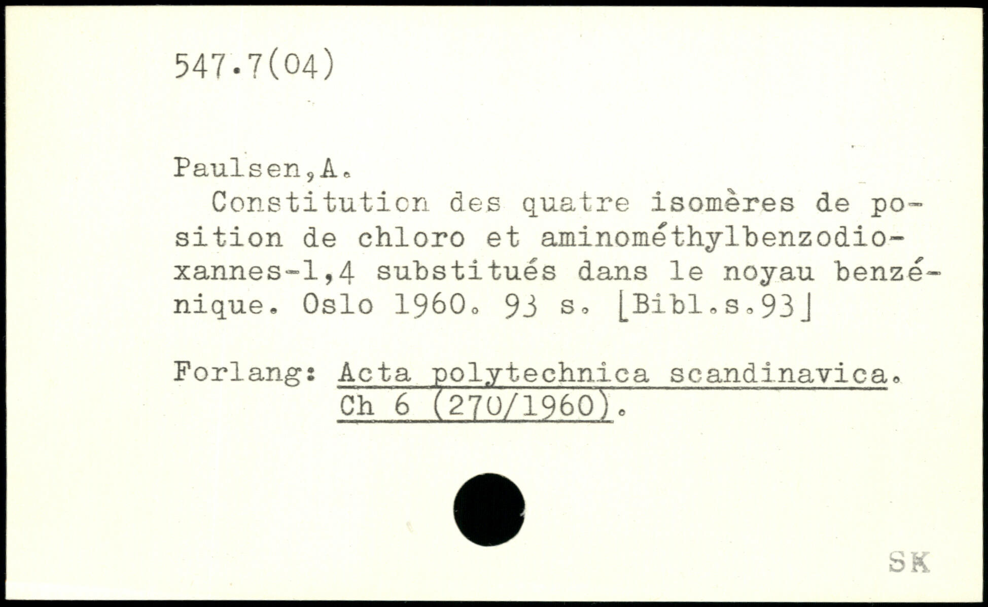 Constitution des quatre isomères de position de chloro et aminométhylbenzodio-xannes-1