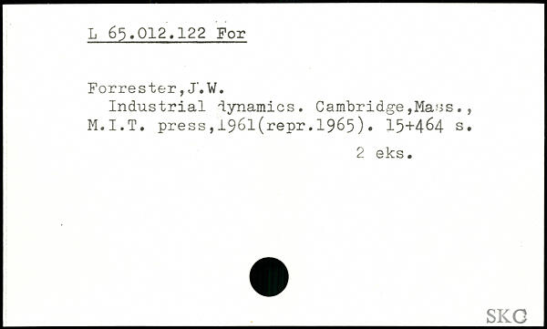 Industrial dynamics. Cambridge,Mass., M.I.T. press , 1961(repr. 1965). 15+4-