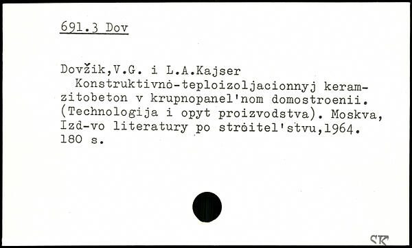 Konstruktivnô-teploizoljacionnyj keram-zitobeton v krupnopanel1 nom domostroenii. (Technolog!ja i opyt proizvodstva). Moskva, Izd-vo literatury po strôitel'stvu,1964.