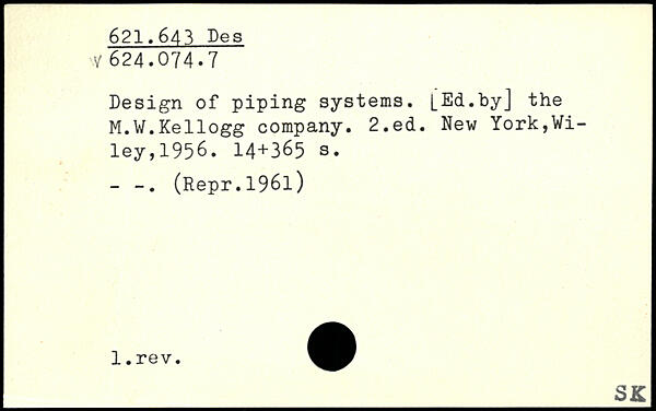 Design of piping systems. [Ed.by] the M.W.Kellogg company.