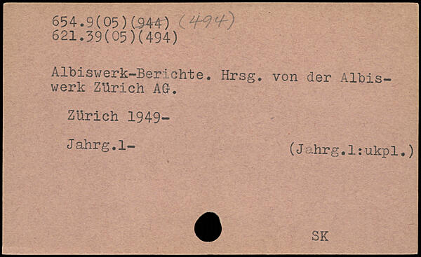 Albiswerk-Berichte. Hrsg, von der Albis-werk ZUrich AG-, Zürich 1949- Jahrg.l- (Jahrg.l:ukpl,)